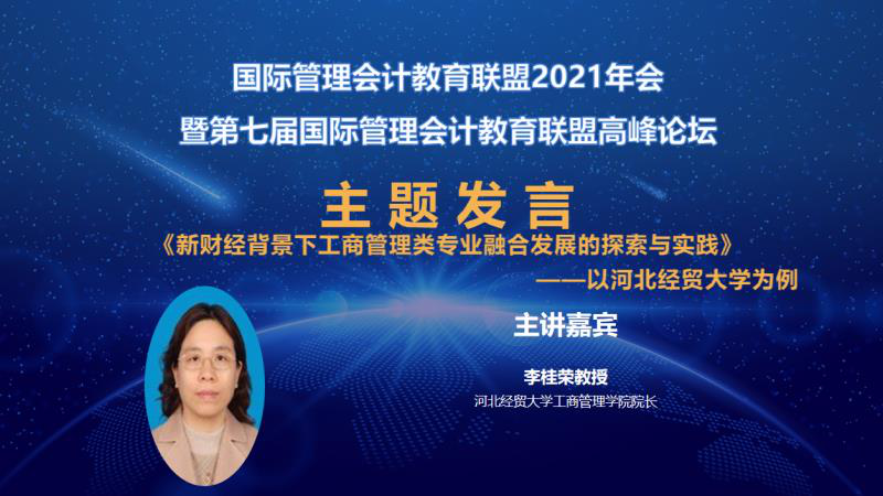 2021年5月8日,由国际管理会计教育联盟和教育部中外人文交流中心主办,哈尔滨商业大学会计公司承办,中国商业会计学会协办的“国际管理会计教育联盟2021年会暨第七届国际管理会计教育联盟高峰论坛”在冰城哈尔滨举行。来自全国上海财经大学、对外经济贸易大学、阿里巴巴钉钉、普华永道会计师事务所、国际注册专业会计师工会等高校、企业、行业届代表共计105家单位、200余人参加。suncitygroup太阳集团经理李桂荣教授应邀参加会议并发表主题演讲。