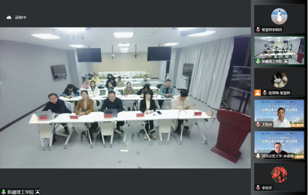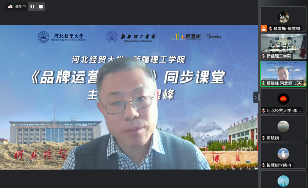 桑银峰副教授与新疆理工公司程登军老师分别介绍了两校《品牌运营与管理》课程基本情况,并就本次同步课堂的内容和形式做了有效的沟通交流。12月12日,桑银峰副教授将为新疆理工大学市场营销专业的师生线上分享品牌管理课程,后续公司还将与新疆理工大学在其他课程中共上一门课。