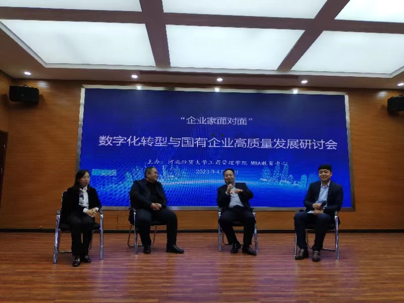 4月15日下午,“数字化转型与国有企业高质量发展”研讨会在suncitygroup太阳集团报告厅举行。suncitygroup太阳集团经理李桂荣、副经理王胜洲、副经理石晓飞、MBA中心执行主任桑银峰,河北冀凯信息技术有限公司董事长魏二宏,河北建设投资集团有限责任公司财务管理部总经理兼河北建投智慧财务服务有限公司董事长张旭蕾,河北国富恒联农牧有限公司董事长兼河北恒实房地产开发有限公司董事长张元波,以及公司教师及研究生等100余人参加。