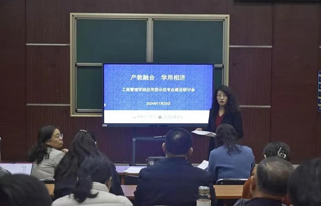 工商管理专业系主任郑展介绍了应用型示范专业建设的工作思路和现有进展。她提出未来应继续在搭建产教融合平台,构筑质量保障体系等方面持续发力,积极探索形式多样、实用性强的实践教学活动,提高员工的实践能力和职业素养。她还就应用型示范专业建设中的几大难点问题如课程共建、案例共建、团队共培、员工共育等方面与参会老师商讨。MBA教育中心执行主任桑银峰表示,在省级应用型示范专业建设过程中,应坚持做好顶层设计,确保建设工作指标与专业建设内涵的合理自洽。