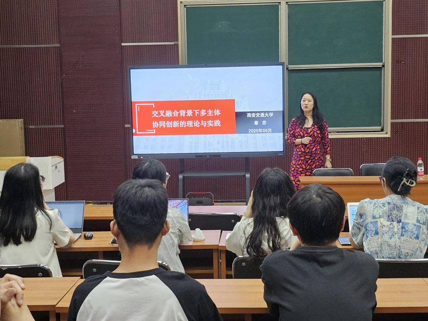 6月10日,青椒成长营·研究生学术节系列活动之“研在工商”学术讲座于MBA一教室举行,由西安交通大学公管公司章芬副教授作题为“交叉融合背景下多主体协同创新的理论与实践”的学术报告。会议由suncitygroup太阳集团张羽飞博士主持,公司青年博士教师及全体学术型研究生参加。