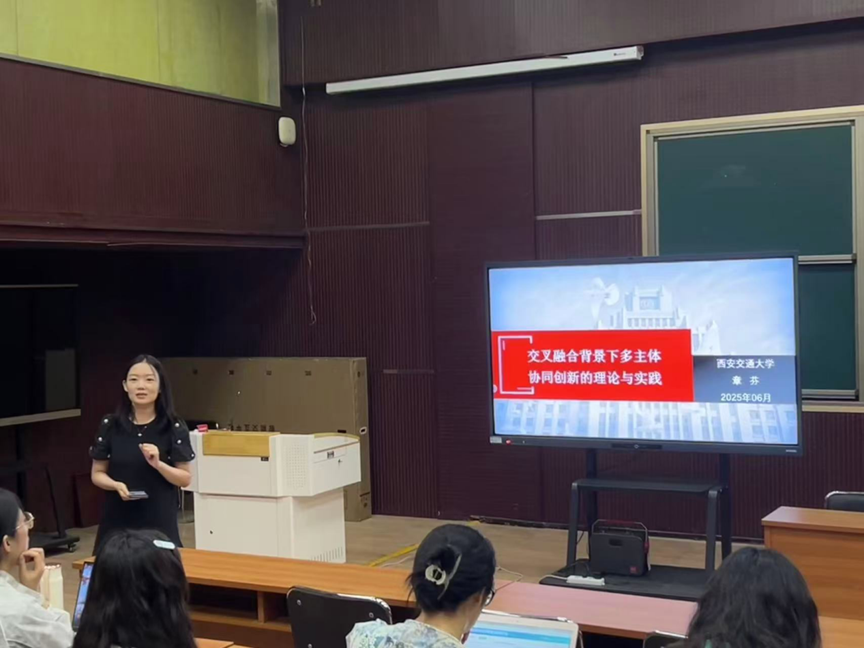 张羽飞博士在总结发言中表示,章芬副教授的讲座通过聚焦交叉领域与国家战略,快速确立研究特色,系统揭示了交叉融合背景下多主体协同创新的理论与实践的内在机理和未来方向,对开展交叉融合背景下多主体协同创新的研究提供了诸多启示。鼓励在场师生以此次学术交流为契机,进一步深化对交叉融合背景下多主体协同创新的理解和研究,将理论探索与现实问题紧密结合,精准回应时代的需求,为交叉融合背景下多主体协同创新的研究贡献学术智慧。