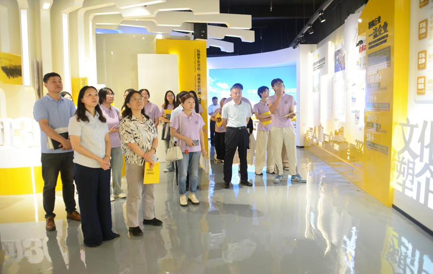 随后,实习小分队赴苹乐集团产品展厅、文化展厅及车间进行参观。苹乐粮机企业人员详细介绍了苹乐集团在党建引领、自主创新、国际合作等方面的成果,向员工们讲解了清粉机、选胚机、称重布料机等实物模型,展示了阿米巴管理模式架构、生产车间运作及物流体系运输情况。