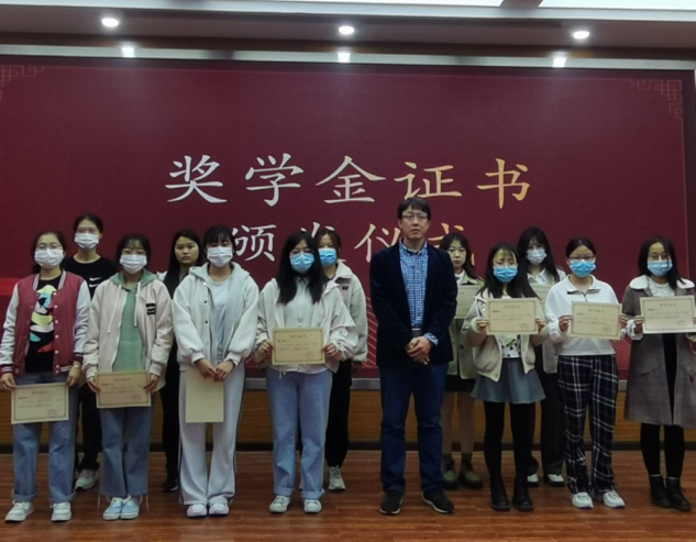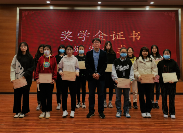 会议最后,梁泽锋为在2020-2021学年度第二学期获得奖学金的同学颁发奖学金证书并合影留念,以此鼓励获奖同学再接再厉、再创佳绩,激励全体同学向榜样看齐,成为更优秀的自己。