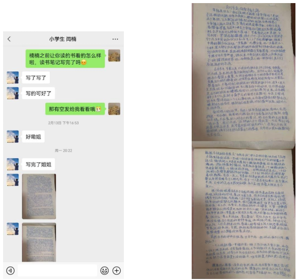 结对小员工经常通过微信的方式与我分享读书过程中的感悟,我发现小朋友读完书后的读书心得十分的有深度,说明读书对孩子的认知发展起到了很大的帮助。在这次活动中,我们建立了非常深厚的友谊,我们成为了非常好的朋友。我相信,通过此次活动,我们在未来看问题的角度会更加的多元化,更能捉住生活中的美好幸福。