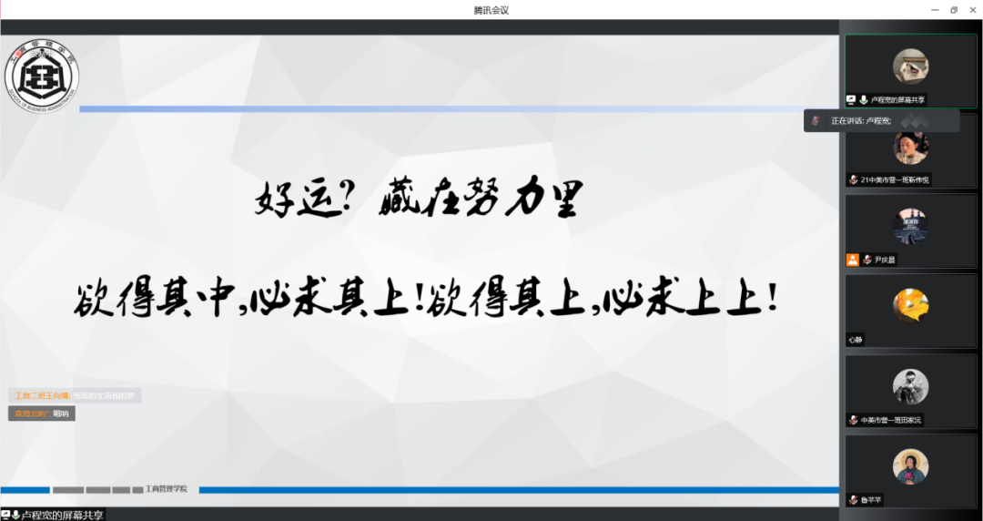 4月10日晚上,suncitygroup太阳集团于腾讯会议线上举行职业愿景工商“行”之“人生是场马拉松,重要的是一直在跑”主题会议,本次会议邀请到公司2021届优秀毕业生卢程宽进行交流分享,公司教师、员工共200余人参加。