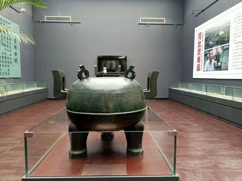 现如今,家乡的青铜铸造并没有只停留在中山古国,而是传承下来,记录着历史的辉煌、时代的发展。灵寿县青铜文化传人王三妮推陈出新:2006年铸造的“告别田赋”鼎,记录了广大老百姓对国家免除农业税的喜悦之情,轰动全国,现在此鼎收藏于中国农业博物馆;2009年,王三妮利用古老工艺和新工艺相结合的方法,铸出了重两吨,高两米的“中华尊”;2010年又铸成“五千年文明尊”。由此可见,灵寿县青铜文化博物馆中收录的不仅仅是青铜器具,还是历史的印记。