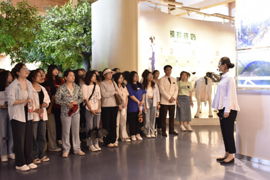 首先,师生们前往君乐宝优致牧场,参观奶牛科普展览馆和挤奶大厅,工作人员向大家详细讲解了奶牛的历史文化、品种繁育、养殖饲喂等科普知识。同时向大家全方位地展示了集农牧体验、文化科普等多种功能于一体的生态观光牧场。随后,师生们前往工厂,参观了君乐宝乳制产品的实验室、研发室、生产车间与灌装车间,考察了各类乳制品的研发、加工、包装的自动化流水生产线。在洁净又先进的现代化生产车间里,大家对企业“让祖国的下一代喝上好奶粉”的担当与为社会生产安全优质食品的责任所感染。接下来,营销总监任晓飞就公司发展历程、产品研发、产品运营、营销推广、公司管理、未来发展等几个方面为同学们做了深入浅出地讲解,人力资源部部长王晓静、人才发展经理赵天宇从职业发展规划和未来成长为师生做了详细解读,并通过互动与师生进行了深入交流,回答了大家关切的问题,对同学们到君乐宝实习、实践发出了诚挚邀请。
