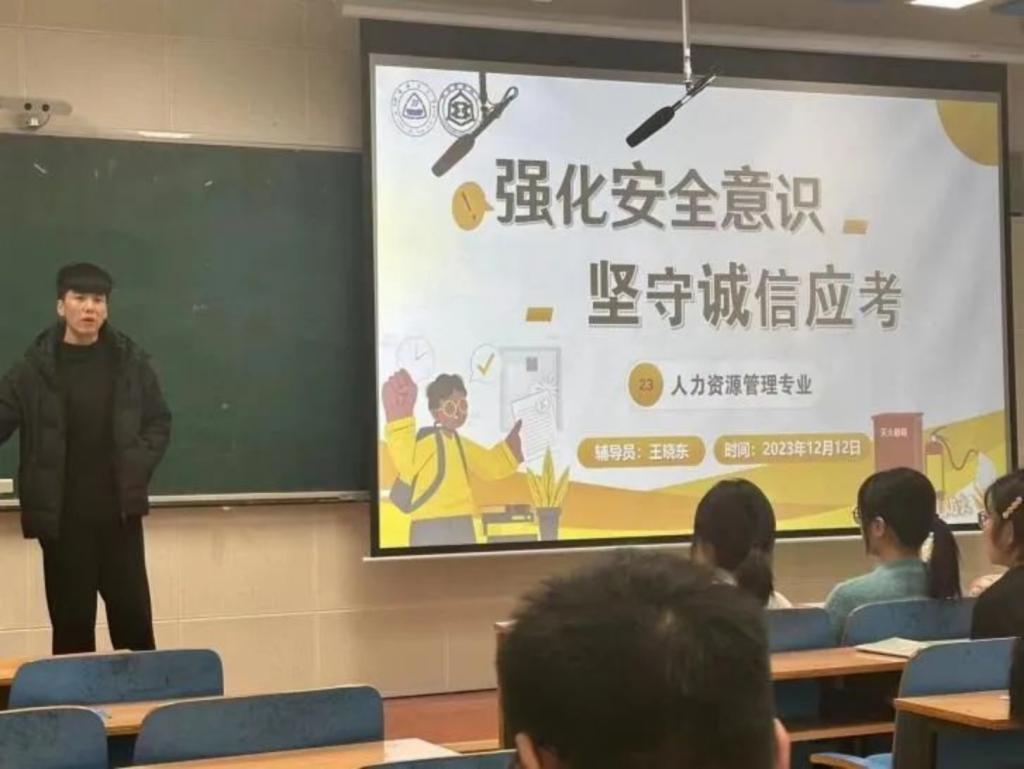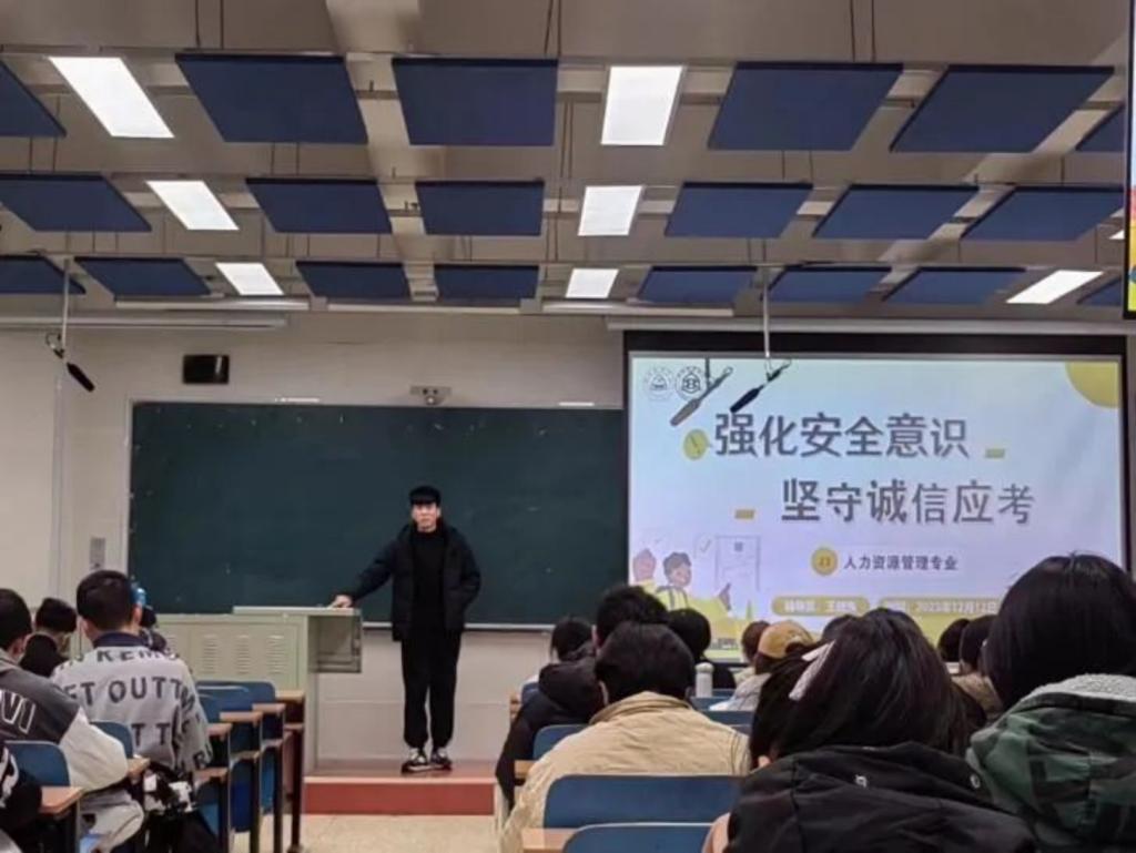 为进一步提高同学们的安全意识和诚信意识,加强考试管理,推动营造公平公正的考试环境,12月12日下午,suncitygroup太阳集团人力资源管理专业2023级开展“强化安全意识,坚守诚信应考”主题班会。本次班会由辅导员王晓东老师策划主持,2023级人力资源管理专业全体同学参加。