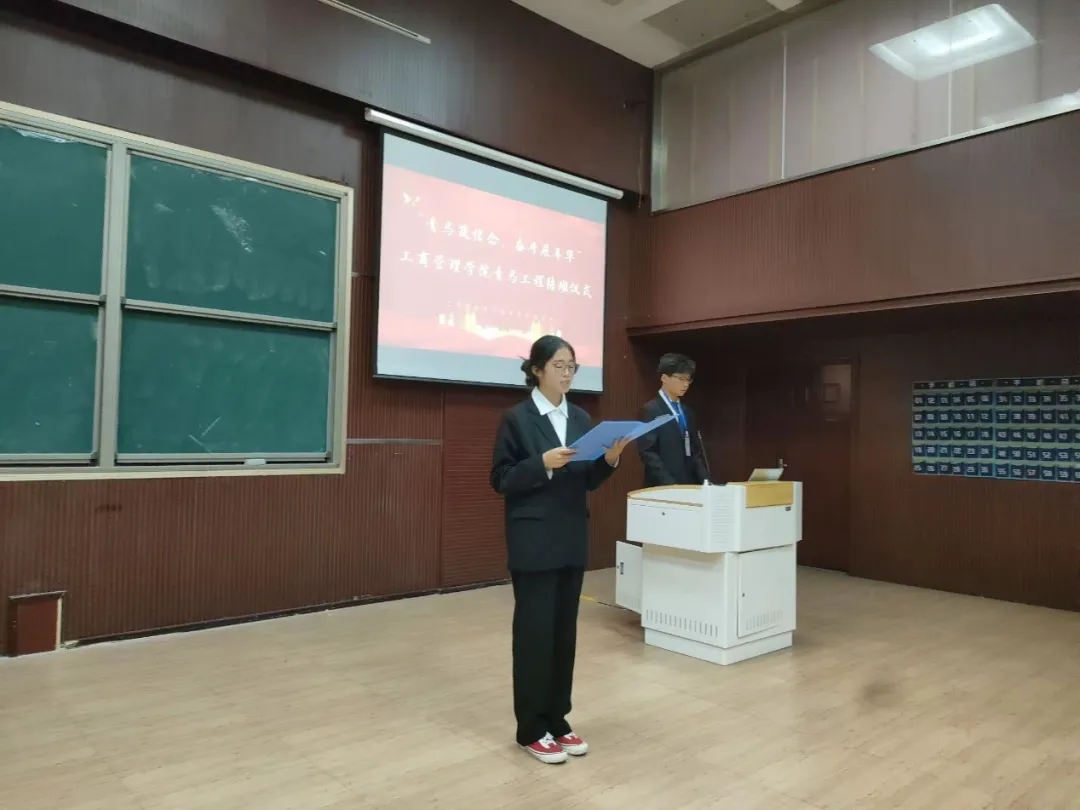 会议伊始,主持人公布青马工程“优秀学员”名单并请优秀学员代表张艺嘉发言,张艺嘉呼吁同学们在今后的学习生活中,牢记空谈误国、实干兴邦的教诲,积极关注国家和世界的发展大势,做时代的参与者,在理论学习和实践锻炼中不断提升自我,让青春脉搏与时代同频共振。