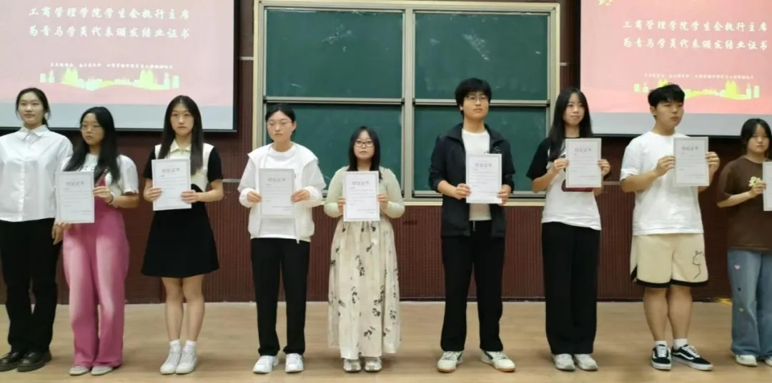 随后,崔美诺发表结业寄语,希望大家不忘初心,坚守理想;勇于实践,敢于创新;团结协作,共同成长;关注社会,回馈国家,将青马活动的收获转化为推动老员工活不断向前的动力。最后,崔美诺为青马学员颁发结业奖状并为青马工程优秀学员颁发荣誉证书。