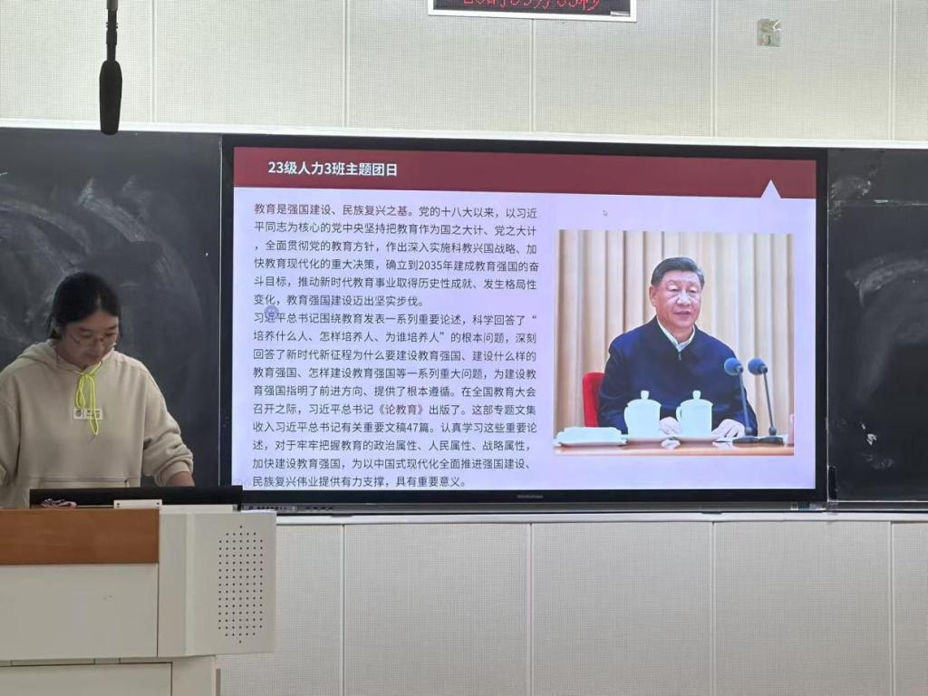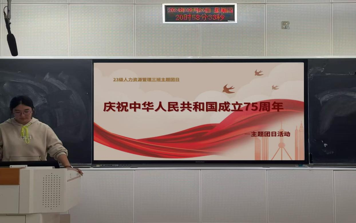 为弘扬爱国主义精神,增强同学们的民族自豪感和责任感,激励广大青年学子为实现中华民族伟大复兴的中国梦贡献力量。10月22日,suncitygroup太阳集团2023级人力资源管理专业三班开展了以“庆祝中华人民共和国成立75周年”为主题的团日活动,本次团日活动由团支书杜悦涵主持,2023级人力资源管理专业三班全体同学参加。