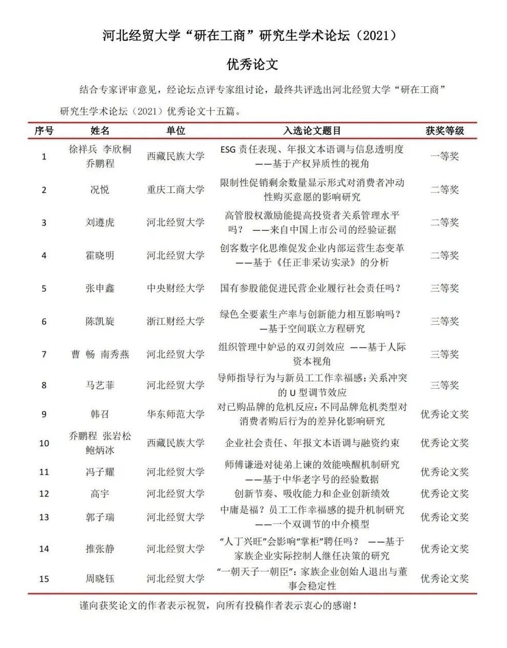此次论坛自11月19日发布公告起,共收到来自北京大学、中央财经大学、浙江财经大学、重庆工商大学、西藏民族大学、云南大学等15所高校的39篇论文,其中8篇进行线上线下报告,其中包括浙江财经大学陈凯旋、中央财经大学张申鑫、西藏民族大学李欣桐、重庆工商大学况悦、太阳集团官方网站曹畅、马艺菲、刘遵虎、霍晓明的论文。四位点评专家对以上八位同学的论文进行了针对性点评,提出了专业性指导意见。最终,结合评审专家意见和点评专家意见,最后评选出一、二、三等奖、优秀论文奖共15篇。