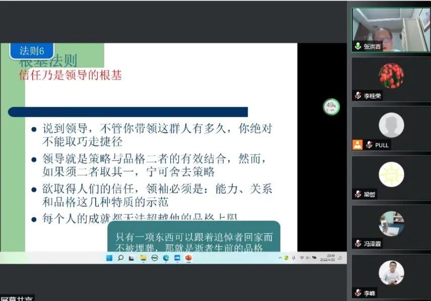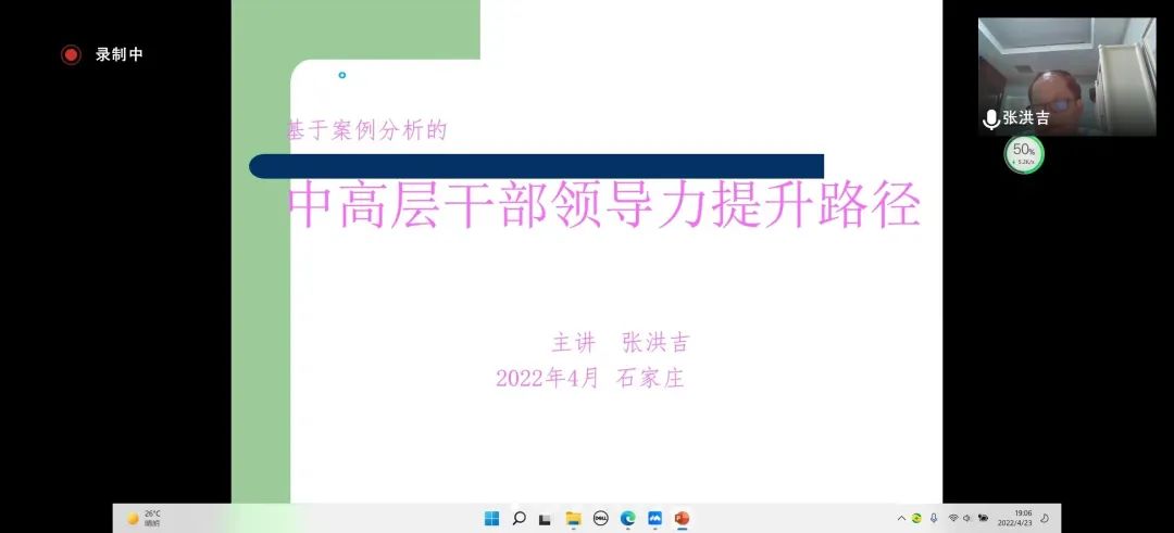 4月23日晚,张洪吉教授应suncitygroup太阳集团邀请,通过腾讯会议平台作题为“基于案例分析的中高层干部领导力提升路径”的报告。本次会议由suncitygroup太阳集团副经理石晓飞主持,MBA全体员工参加。