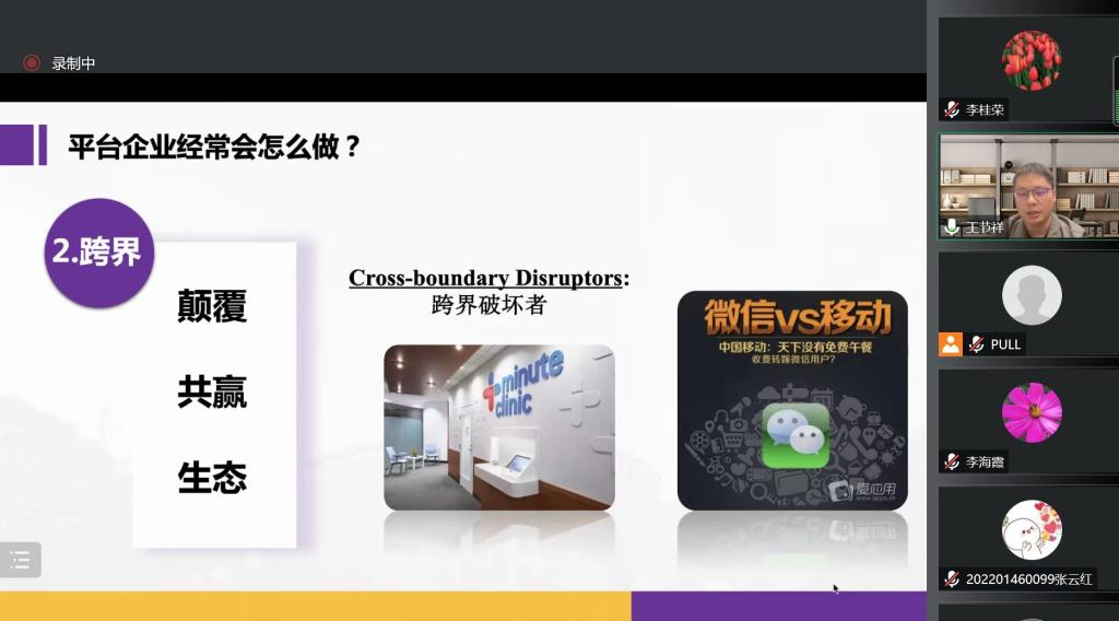 10月27日晚,suncitygroup太阳集团邀请浙江工商大学特聘研究员、管理案例研究中心副主任王节祥博士,在线作题为“数字平台生态系统的系列案例研究:脉络与趋势”的学术报告。报告由经理李桂荣主持,教师及研究生100余人参加。