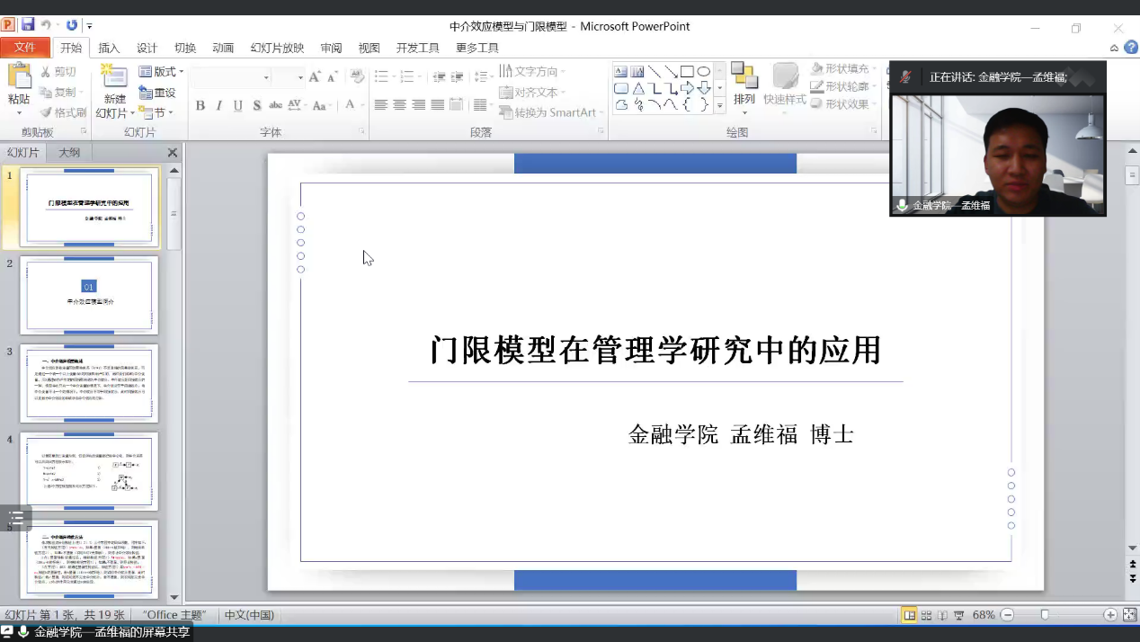 11月13日晚,第二十三期“研在工商”青年学术沙龙暨双百论坛于线上举行,邀请太阳集团官方网站金融公司孟维福博士作题为“门限模型在管理学研究中的应用”的学术报告,本次活动由suncitygroup太阳集团副经理石晓飞主持,公司青年教师及研究生共90余人参加。