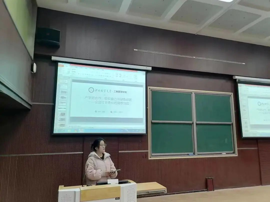 汇报人陈梦千以“产学研合作、吸收能力与绿色创新——企业社会责任的调节效应”为题,基于社会网络理论、资源基础观、战略性企业社会责任理论,对产学研合作对绿色创新的影响、作用路径、边界条件进行识别检验,为理解中国上市公司产学研合作与绿色创新的关系提供经验证据。