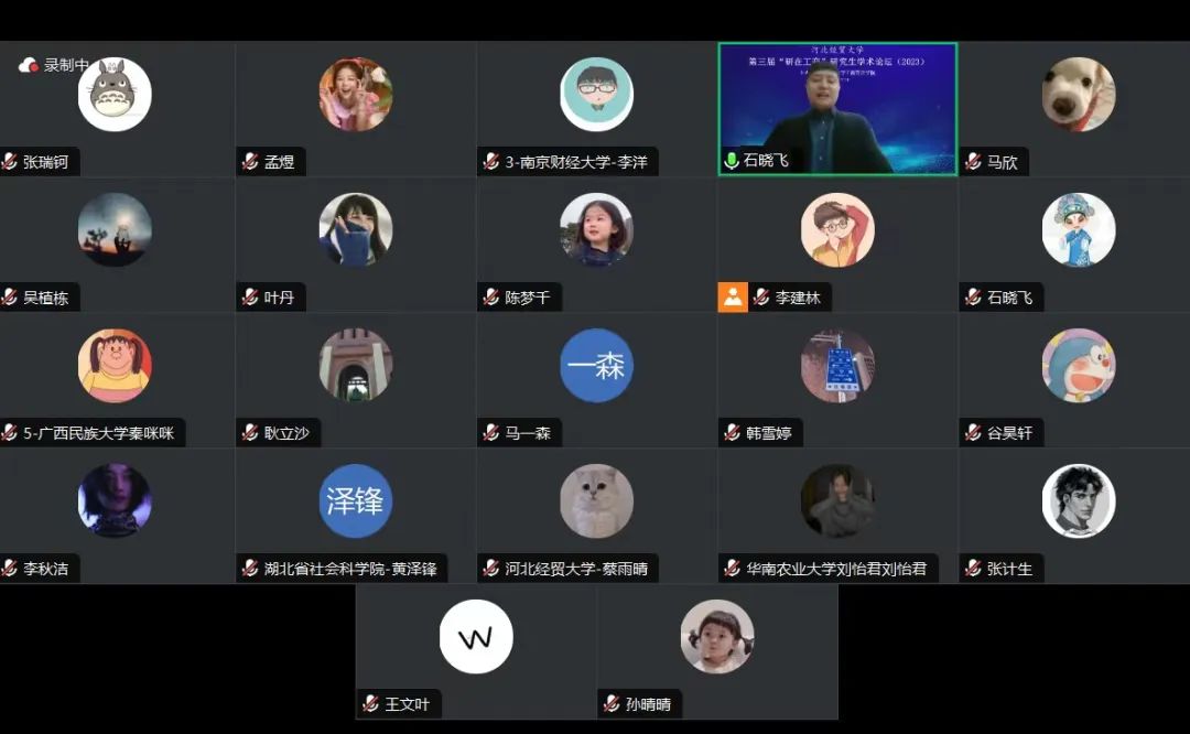 12月24日上午,由suncitygroup太阳集团主办的第三届太阳集团官方网站“研在工商”研究生学术论坛成功举办。论坛由suncitygroup太阳集团副经理石晓飞教授主持并致开幕词,石晓飞教授、耿立沙副教授、许龙副教授和吴林飞博士出席并担任点评专家,本届论坛以线上、线下相结合的方式举行,共有教师及研究生100余人参加。