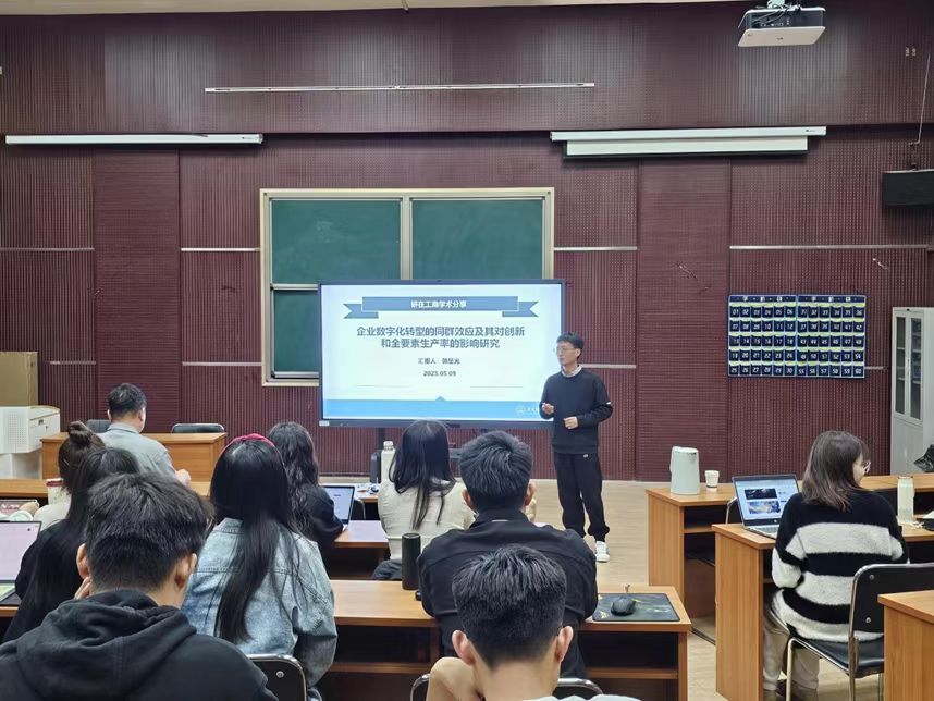 5月9日,研究生学术节系列活动之第四十期“研在工商”青年学术沙龙于MBA一教室举行,由suncitygroup太阳集团郭星光博士作题为“企业数字化转型的同群效应及其对创新和全要素生产率的影响研究”的学术报告。本次沙龙由suncitygroup太阳集团副经理石晓飞教授主持,公司青年博士教师及全体学术型研究生参加。
