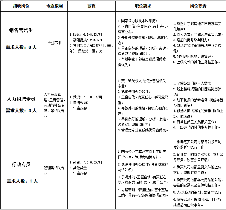 公司有着近三十年的房地产行业的从业经验,有着全员国家公办院校二本以上学历的高素质的员工团队,具有央企模式的福利待遇及央企背景,有着良好的企业文化平台及工作平台,公司在同行业中具有很强的竞争实力。