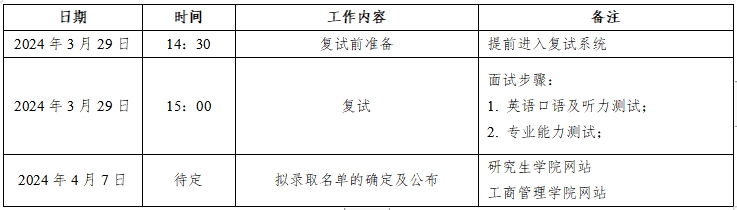 公司2024年研究生复试录取工作,将分为复试资格的审查与网上面试考核、拟录取名单的确定等几个环节。各环节的相关要求与规定如下: