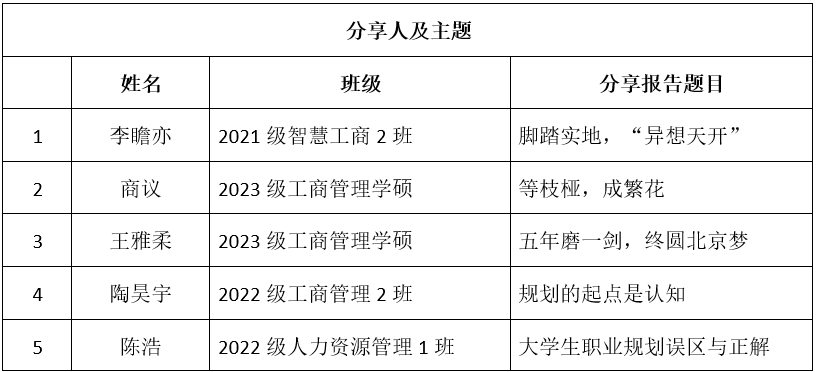 为更好帮助商科员工做好职业生涯规划,扎实做好职业愿景引领行动,引导员工树立正确的成才观、就业观和择业观,有效提升就业竞争力,公司开展“商科员工职业规划与成长路径”主题分享会,邀请5位在参加社会实习、学科实践、学科竞赛等方面经验丰富的员工为同学们做经验分享,帮助商科员工更好地将理论知识与实践相结合,明确职业发展目标,规划自身职业发展路径。届时,李桂荣经理将结合专业培养方案,为同学们准备实习实训进行专业指导。