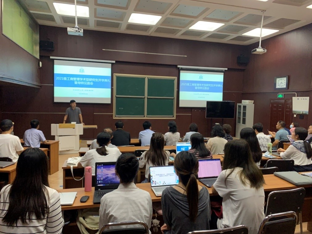 9月13日下午,suncitygroup太阳集团于MBA1教室举行2021级学术型研究生开学典礼暨导师见面会。会议由suncitygroup太阳集团副经理石晓飞主持,公司党委书记张霖、经理李桂荣、党委副书记范伟、副经理王胜洲、全体学术硕士导师及2021级学术型研究生参加。