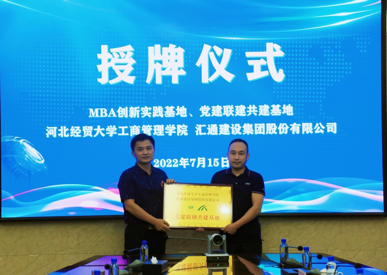 张霖、李桂荣分别代表公司与汇通集团举行“党建联创共建基地”和“MBA教育中心创新研究基地”授牌仪式。双方约定今后将在党建联创共建、MBA人才培养、企业管理人员培训、创新基地建设、员工就业等方面开展紧密深入合作,助力双方高质量发展。