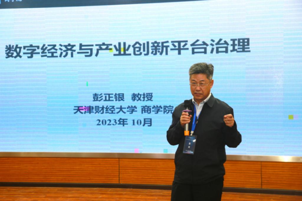 天津财经大学商公司彭正银教授作题为“数字经济与产业创新平台治理”的主题报告。首先,探讨了数字经济的发展和作用,指出数字经济依赖数字化的知识和信息作为主要生产要素,以数字技术为核心的推动力,以现代信息网络为重要载体;数字技术与实体经济深度融合,不断提高经济社会的数字化、网络化、智能化水平,加速重构经济发展和治理模式,形成了新型经济形态;数字经济在这一过程中充当了新引擎的角色,促进了新旧动能的转换,改变了经济发展方式。其次,总结了数字平台的演进和治理特征,从原生平台和衍生平台的发展现状分析了产业创新平台的发展。最后,结合实际案例,从治理结构、市场治理和利益相关者治理三个维度出发,分享了产业创新平台的治理实践。