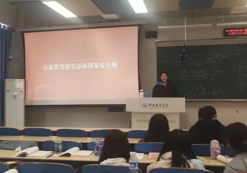 为深入贯彻落实总体国家安全观,提高老员工对国家安全重要性的认识,进一步增强维护国家安全的责任感和使命感,4月10日,2022级工商管理专业组织开展了以“全面贯彻落实总体国家安全观”为主题的安全教育学习活动,此次活动由辅导员张芷璐指导,李祺祺主持,2022级工商管理专业全体同学参加。