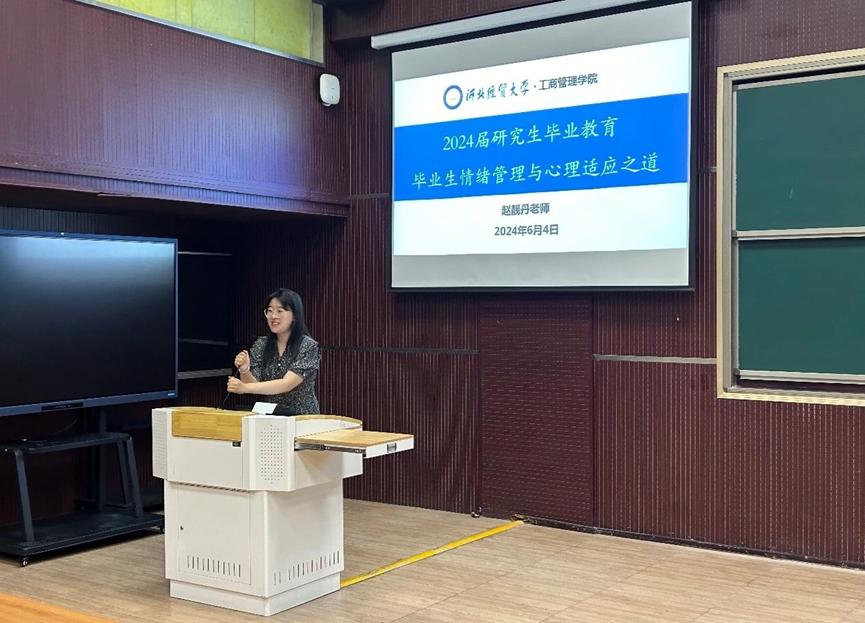 情绪,是心理健康的“睛雨表”。为进一步加强对毕业生心理健康的教育引导,提升情绪调节与管理能力。6月4日,公司开展“毕业生情绪管理与心理适应之道”主题讲座。讲座由suncitygroup太阳集团辅导员赵靓丹老师主讲,全体学术型研究生参加。她强调毕业生就业心理的调试是一个复杂而重要的过程,并结合自身求职工作经历,对即将毕业的同学们提出三点希望:一正确定位自我,树立合理的就业观念;二调整心态,增强自信;三制定合理的就业规划,积极行动;四学会面对挫折,保持积极的心态。