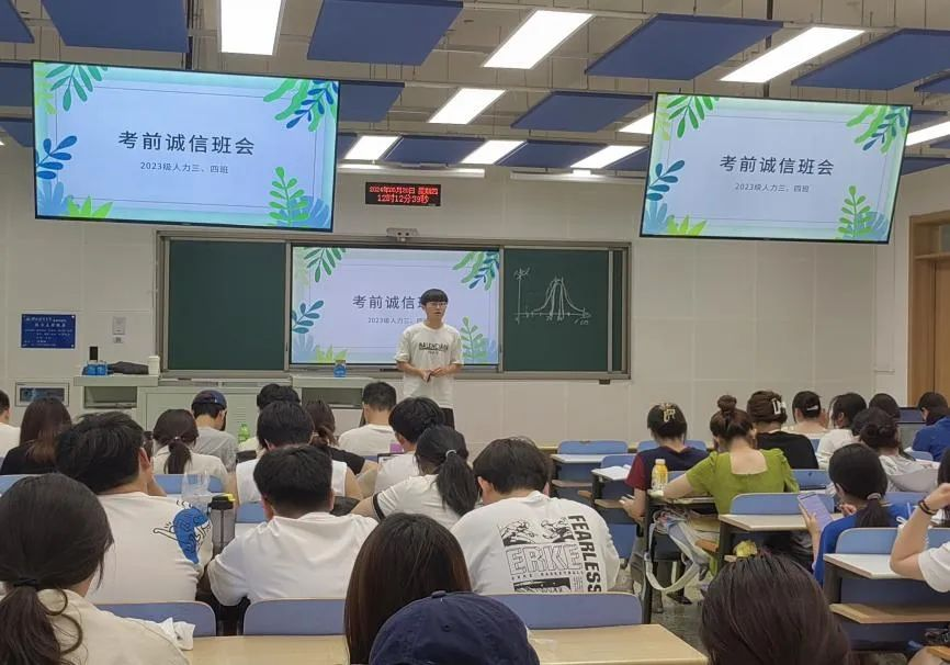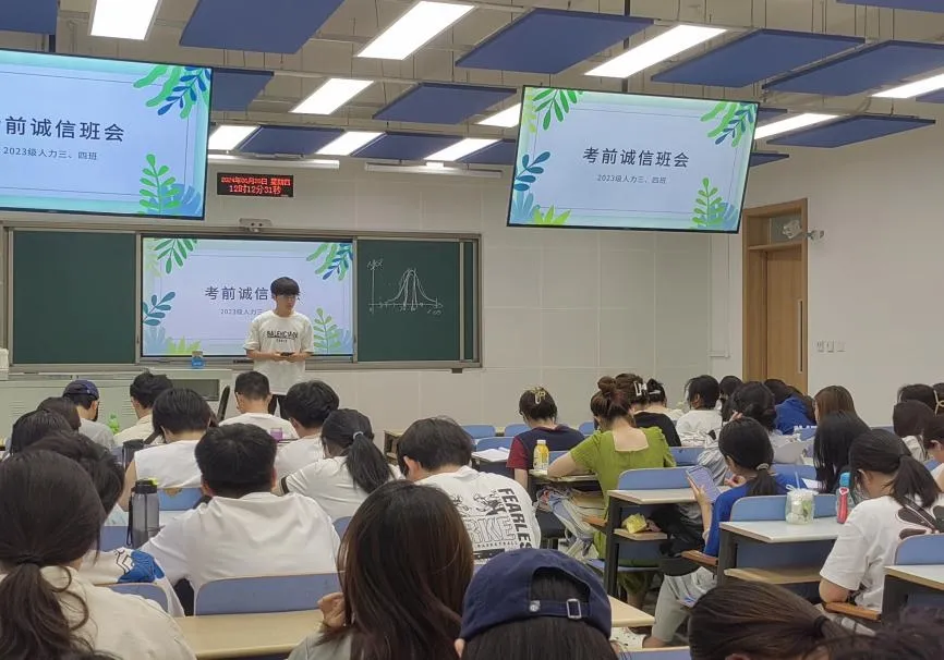 为了迎接即将到来的考试周,加强同学们的诚信意识,营造公平公正、诚实守信的考试环境,6月20日,suncitygroup太阳集团2023级人力资源管理四班开展以“诚信应考新风尚”为主题的班会活动。本次班会由班长王赫主持,辅导员王晓东及2023级人力资源管理四班全体同学参加。