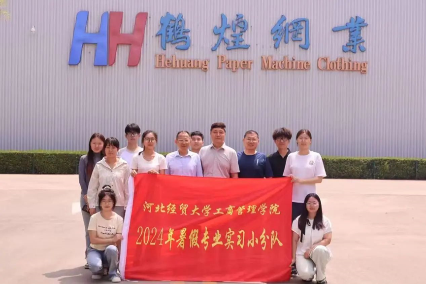 在鹤煌网业股份有限公司,总经理郑悦宁带领师生参观企业车间。在车间,小分队成员们真切感受到了公司在技术创新、品质控制及客户服务等方面的卓越表现。同学们围绕企业运营、技术创新等话题,与郑总展开了深入而热烈的探讨。最后,郑总向同学们发出诚挚的实习邀请,希望他们能成为鹤煌的一员,共同书写校企合作的新篇章。