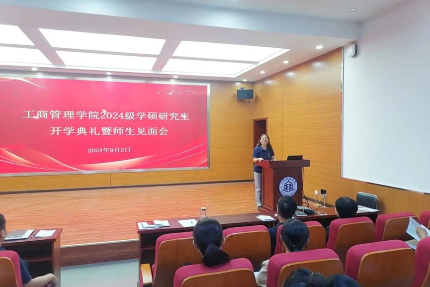 首先,李桂荣经理对2024级新生表示热烈欢迎,并介绍了工商管理专业的基本情况、招生情况和培养情况。用“探索”“平台”“信念”三个关键词表达了对全体新生未来的学习、生活和社会实践等方面的期望。探索,是人类进步的永恒动力,也是公司不断前行、追求卓越的核心精神;平台,是梦想起飞的翅膀,公司一直致力于为同学们搭建起通往成功与辉煌的桥梁;信念,是前行的灯塔,希望同学们用实际行动诠释“严谨为师,勤奋为学,诚信为人”的校训精神。