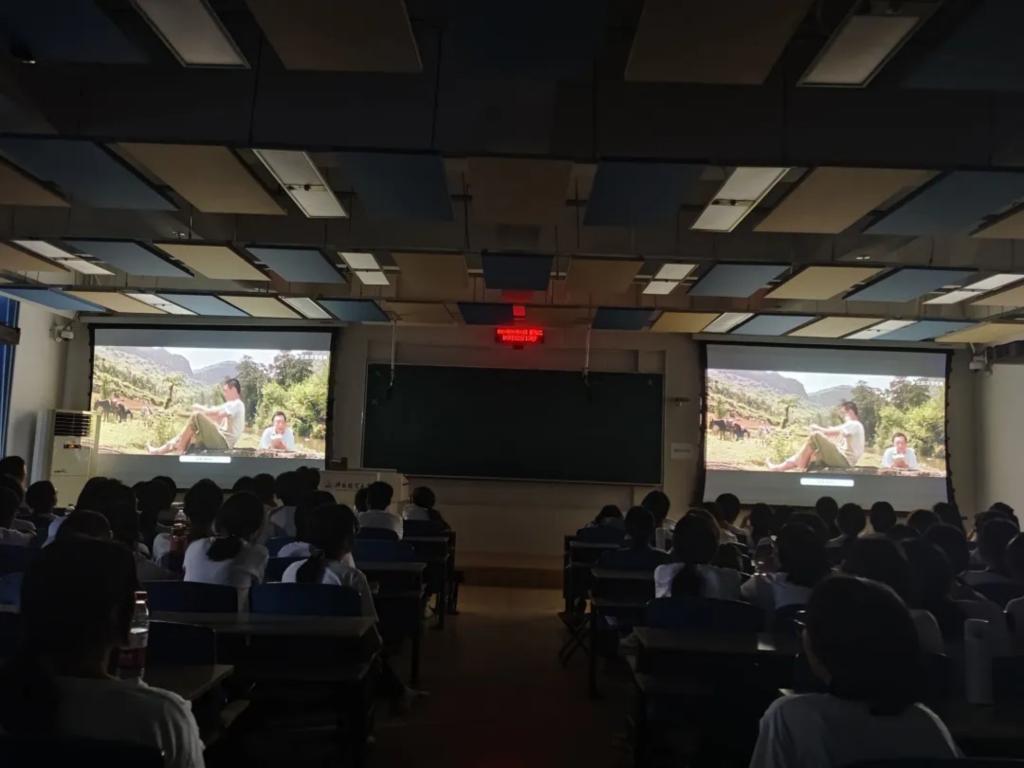 随后,同学们观看了经典电影《高山下的花环》。这部影片以对越自卫反击战为背景,生动展现了革命军人的英勇无畏、无私奉献和深厚的战友情谊。在观看过程中,许多同学热泪盈眶,他们被影片中那一个个鲜活的人物形象和感人至深的情节所打动,深刻感受到了军人的使命与担当以及浓厚的爱国主义精神,也更加体会到了如今和平生活的来之不易。