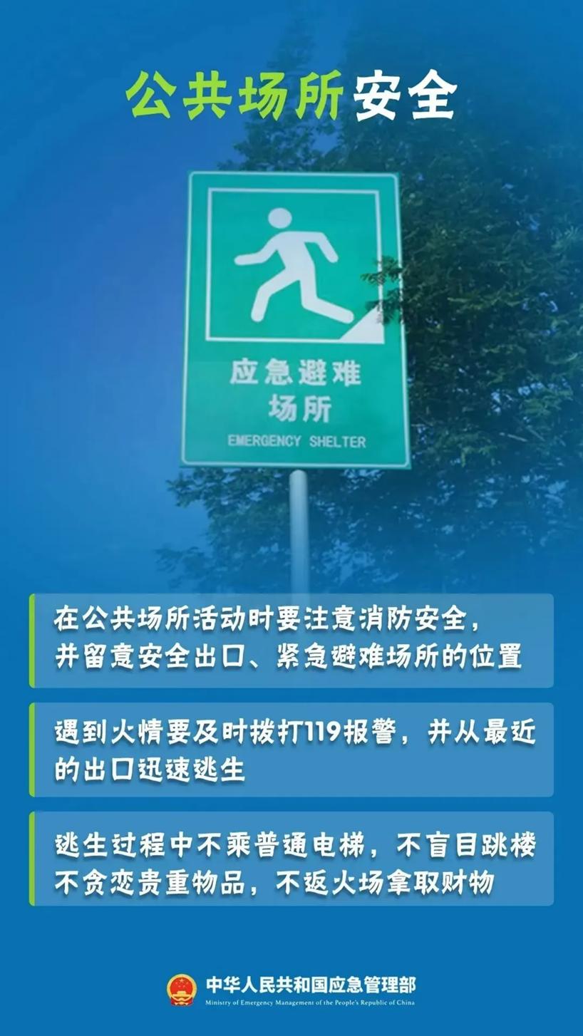1.【做好应急准备】进入人员密集场所,首先要观察安全出口、疏散通道、消防器材位置,牢记疏散标识箭头所指的疏散方向。