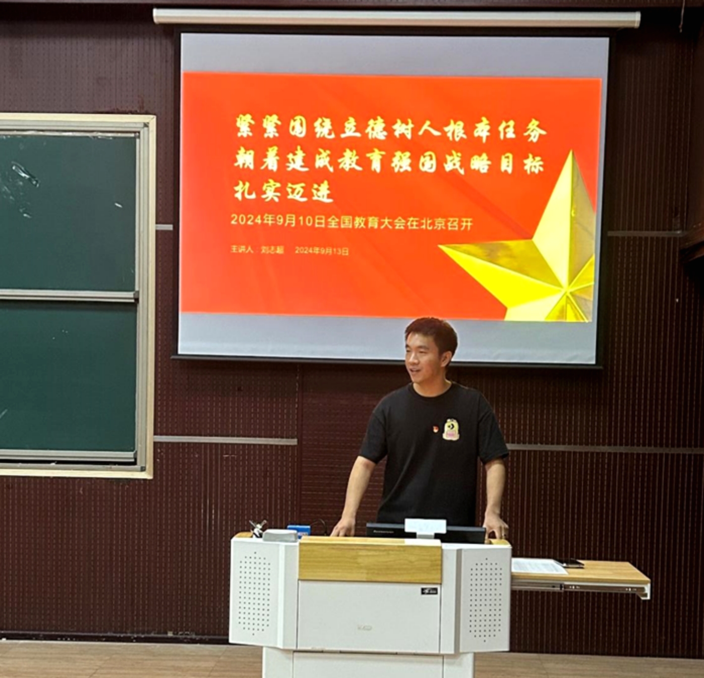 2024级工商管理专业研究生刘志超主讲本届第一期微党课,以习近平总书记在全国教育大会上“紧紧围绕立德树人根本任务 朝着建成教育强国战略目标扎实迈进”的主题讲话展开探讨。教育是强国建设、民族复兴之基。建成教育强国是近代以来中华民族梦寐以求的美好愿望,是实现以中国式现代化全面推进强国建设、民族复兴伟业的先导任务、坚实基础,战略支撑,必须朝着既定目标扎实迈进。刘志超从用思想铸魂育人、统筹实施发展战略、坚持以人民为中心、培养高水平教师队伍四个方面传达了习近平总书记在教育大会的中心思想。首先,教育强国是一项复杂的系统工程,需要我们紧紧围绕立德树人的这个根本任务,着眼于培养德智体美劳全面发展的社会主义建设者和接班人,坚持社会主义办学方向。其次,要统筹实施科教兴国战略、人才强国战略、创新驱动发展战略,一体推进教育发展、科技创新、人才培养。再次,坚持以人民为中心,让教育改革发展成果更多更公平惠及全体人民。最后,实施教育家精神铸魂强师行动,培养造就新时代高水平教师队伍。
