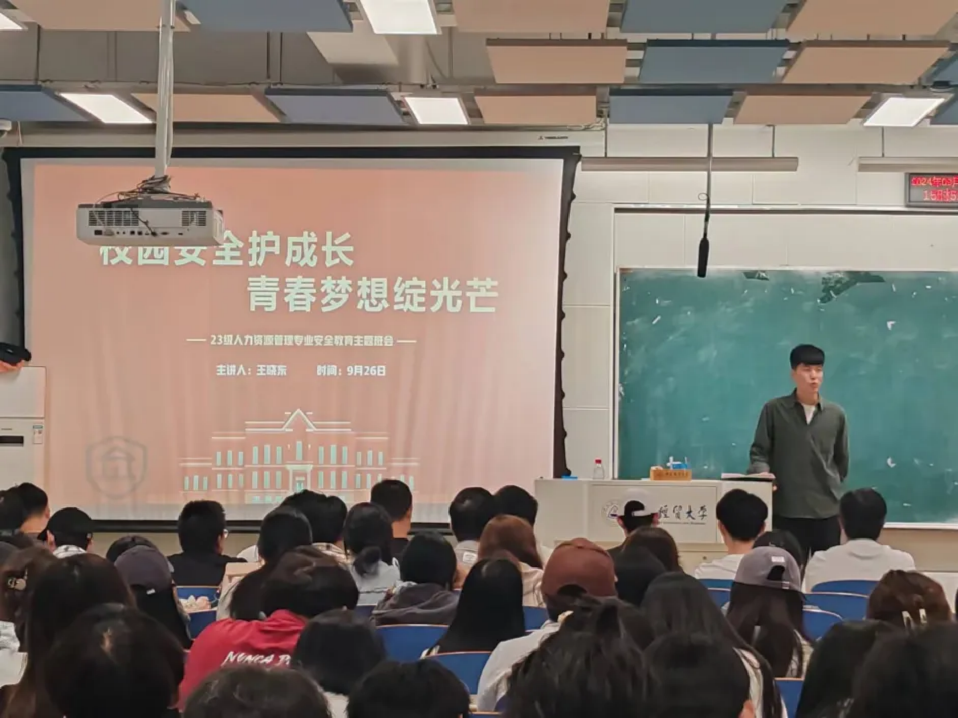 会后,各班陆续组织召开了安全教育主题班会,会议主要围绕国家安全教育、个人安全防护、财物保管、用电安全、出行安全指南、消防自救知识以及网络安全防范等内容。辅导员老师们用一系列真实案例为同学们解读了公司的各项安全管理规定,揭示了日常生活中潜在的安全隐患及可能遇到的各类安全事故,深刻警醒同学们认识到安全问题的严峻性,强调“安全重于泰山”,任何时候都不可掉以轻心。同时,对于即将到来的国庆假期,嘱咐同学们注意人身安全,出游结伴同行,不去偏僻、河边等有安全隐患的地方,树立防火、防溺水、防诈骗等安全意识,假期结束后按时返校。
