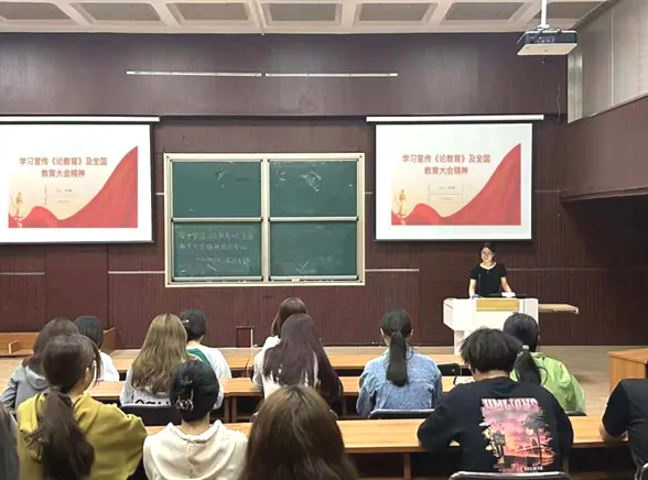 各班辅导员认真落实思想教育工作,陆续开展“习近平同志《论教育》与全国教育大会精神学习”的主题班会。班会上,各辅导员带领同学们学习了习近平总书记在全国教育大会上的重要讲话,强调了教育作为强国建设、民族复兴之基的重要地位并介绍了国家的各项教育方针政策,鼓励同学们作为新时代的青年,要有远大的理想和信念,将个人发展与国家建设相结合,为实现中华民族伟大复兴的中国梦贡献力量。