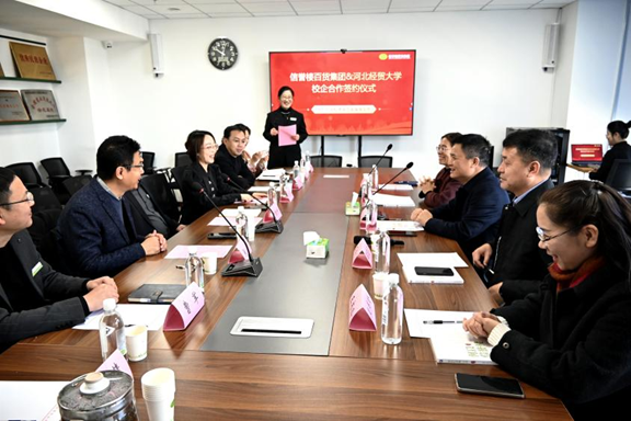 许胜利从信誉楼百货集团有限公司的发展历程、经营规模、企业文化等方面进行了系统介绍。他表示,信誉楼坚持党建引领、诚信经营,希望通过深入合作推进集团党建工作标准化规范化建设。员工的年轻化、专业化是企业持续健康发展的保障,目前已有39位经贸学子任职信誉楼百货集团的中高层干部。希望能够继续加强校企合作,充分发挥双方在专业理论和实践能力上的优势,形成互补效应,实现共促共赢。