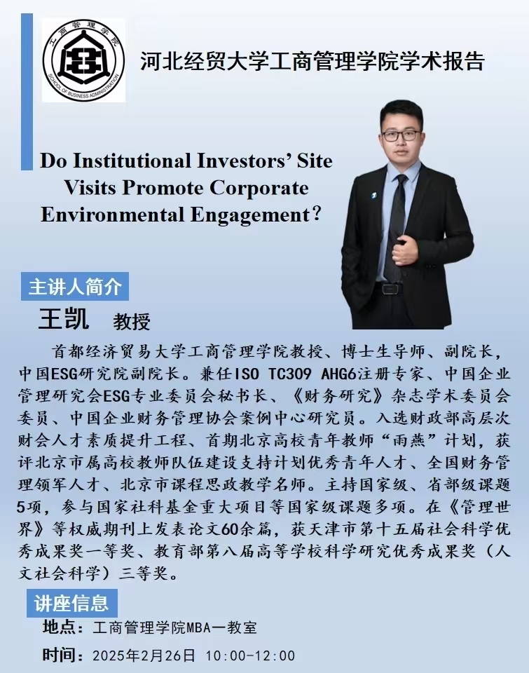 学术讲座预告||机构投资者的实地考察是否促进企业环保参与