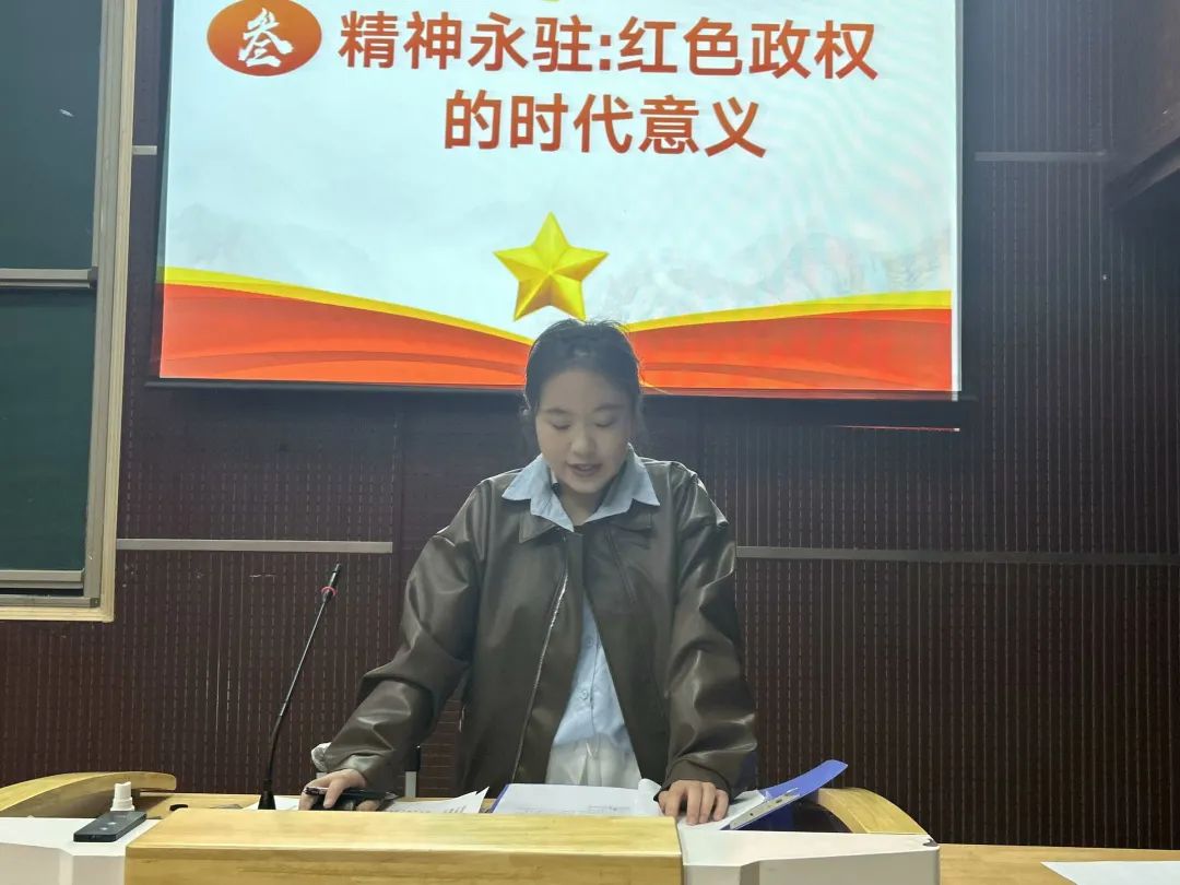 活动伊始,团委副书记李祺祺从“红色政权的诞生背景”“革命斗争的关键历程”“红色政权的时代意义”三个方面带领青马成员重温红色政权的峥嵘岁月,并结合经典红色著作,系统梳理了中国共产党从革命到建设的奋斗历程,强调“青年一代需从红色书籍中汲取信仰力量,筑牢理想信念之基”。