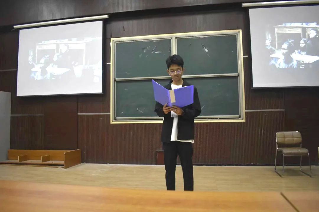 活动伊始,主持人郑博旭以“从历史中汲取奋进力量”为主题开场,强调青年学子需以史为鉴、赓续红色血脉。随后,工作人员李泽森结合历史背景,从“思想建党、政治建军”角度解析了古田会议的时代意义。之后,全体学员共同观看《古田军号》。影片以红军小号手的视角讲述1929年红军从井冈山突围至闽西期间,毛泽东、朱德、陈毅等革命领袖,带领年轻红军突破国民党围剿,克服党内分歧,在绝境中探索革命真理与出路的故事 。其展现的坚定信仰、探索真理和团结奋斗精神,激励同学们传承红色基因,坚定理想信念,在学习生活中勇于面对困难,砥砺前行。