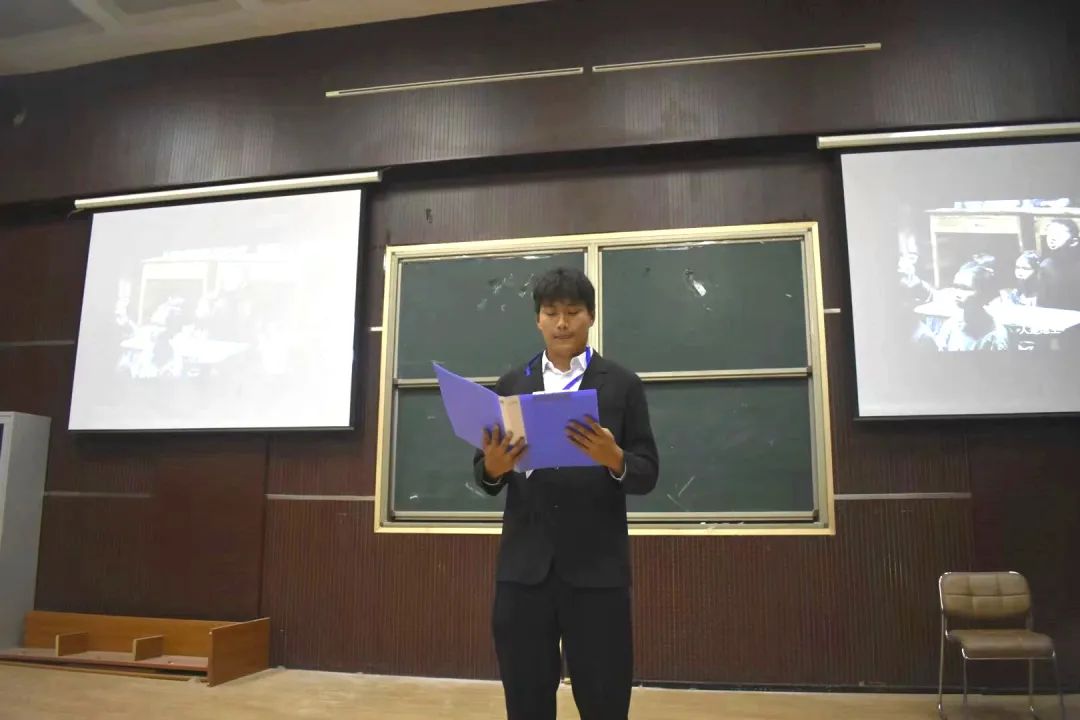 2023级工商管理专业四班王泽旭作为主讲人,结合作者个人经历与时代背景,为学员们介绍《红星照耀中国》的创作缘起,聚焦毛泽东、周恩来等书中主要人物,以及长征、抗日战争等重要事件,深入阐释作品在国内外产生的影响,呼吁学员们从作品中汲取力量,传承红色精神。