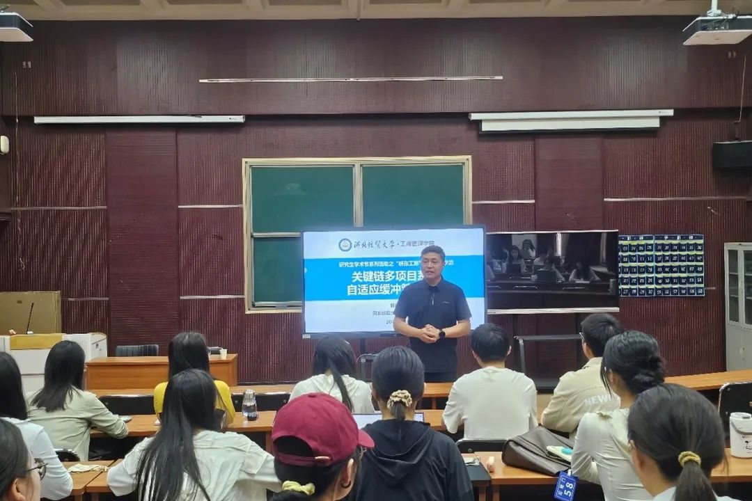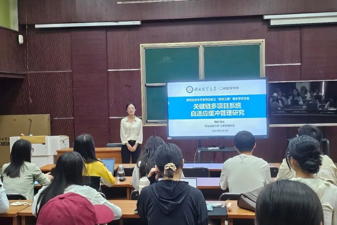 6月4日,研究生学术节系列活动之第四十六期“研在工商”青年学术沙龙于MBA一教室举行,由suncitygroup太阳集团韩晴博士作题为“关键链多项目系统自适应缓冲管理研究”的学术报告。本次沙龙由suncitygroup太阳集团副经理石晓飞教授主持,公司青年博士教师及全体学术型研究生参加。