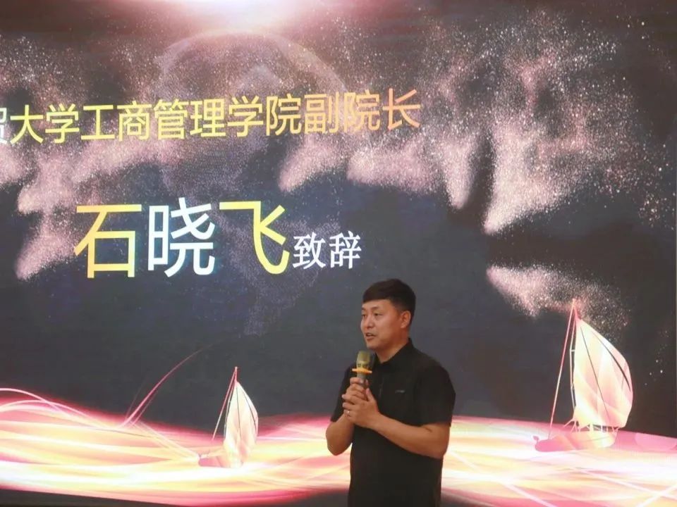 下午,MBA联合会换届仪式在多功能厅举行。首先由石晓飞副经理致辞,他肯定了历届MBA联合会的努力,并表示MBA教育中心会博采众议,助力MBA联合会为同学们组织更多更有意义的活动。他对MBA联合会的未来寄予厚望并呼吁新鲜血液的加入。随后,第十届MBA联合会主席吴太超发言致辞。吴太超学长对新生提出打开胸怀,积极参加各种活动的建议并详细解读了读MBA的意义并介绍了MBA联合会的职能、意义及目标。他祝愿第十一届MBA联合会的工作顺利展开。接着,MBA中心党支部书记赵靓丹宣读第十一届MBA联合会成员名单及职务。第十一届由MBA联合会主席宋子京,副主席陈思明、王捍朝,秘书长田志赟,创新扩展部部长李肖飞,财务部部长郝恩,外联部部长张奇,文体部部长田肖岳,宣传部部长王皓月组成。他们一一登台亮相,向同学们进行自我介绍。主席宋子京发表就职感言,他表示深感MBA联合会主席一职责任重大;第十一届MBA联合会将帮助同学们学习知识,整合资源,结交朋友,定不负信任,做出成绩。紧接着,MBA联合会会旗交接仪式举行,第十届联合会会长吴太超学长向第十一届联合会会长宋子京传递会旗。这不仅仅是职务的交接,更意味着MBA联合会责任的赓续传承。最后,张霖书记向第十届MBA联合会会长吴太超颁发主席顾问聘书,肯定其在职期间贡献。