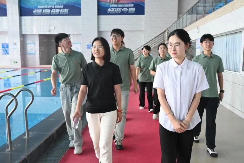 访谈结束后,实践队在工作人员的带领下参观了白沙村体育馆。这座现代化的综合场馆内,各类设施一应俱全:宽敞明亮的图书阅览区,设备先进的健身区,标准化的恒温游泳池,此外还设有台球室、篮球场等多样化运动场所,充分满足了村民对提高生活品质、提升健康水平的需求,让队员们切身感受到发展成果惠及民生的温度。