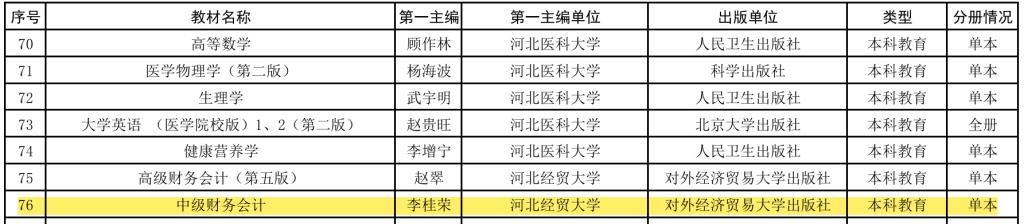 近日,河北省教育厅公布《关于公布河北省“十四五”普通高等教育本科规划教材名单的通知》(冀教高函〔2025〕45号),经严格评审,全省共231种教材入选,其中公司李桂荣教授主编的《中级财务会计》榜上有名。