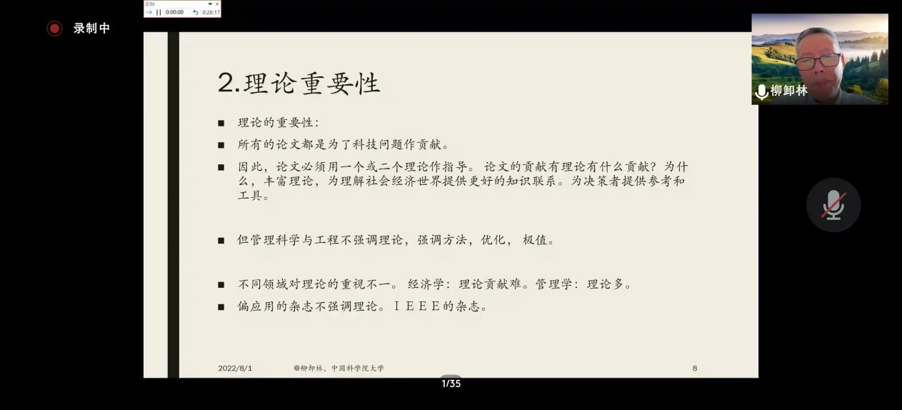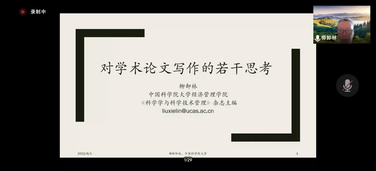 8月1日下午,suncitygroup太阳集团邀请《科学学与科学技术管理》主编、中国科公司大学经济管理公司柳卸林教授作题为“对学术论文写作的若干思考”的学术报告。本次报告以腾讯会议形式进行,来自校内外300余名师生参加,suncitygroup太阳集团经理李桂荣主持此次报告会。
