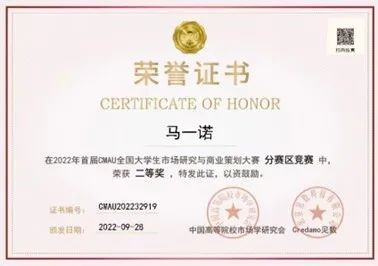 另:首届CMAU市场研究与商业策划大赛是由中国高等院校市场学研究会(简称CMAU)与Credamo见数联合主办,是国家一级学会主办的全国性学科竞赛。大赛由知识赛、校赛、区赛、全国总决赛四部分组成,致力于培养员工的市场研究与商业策划的专业技术与实践能力,为员工个人就业与职业发展打下良好基础。